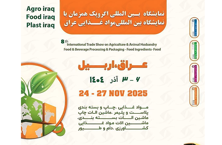 هشتمین نمایشگاه بینالمللی آگروپک (صنایع غذایی و کشاورزی) اربیل عراق در تاریخ ۳ تا ۶ آذرماه ۱۴۰۴ (۲۴ تا ۲۷ نوامبر ۲۰۲۵)